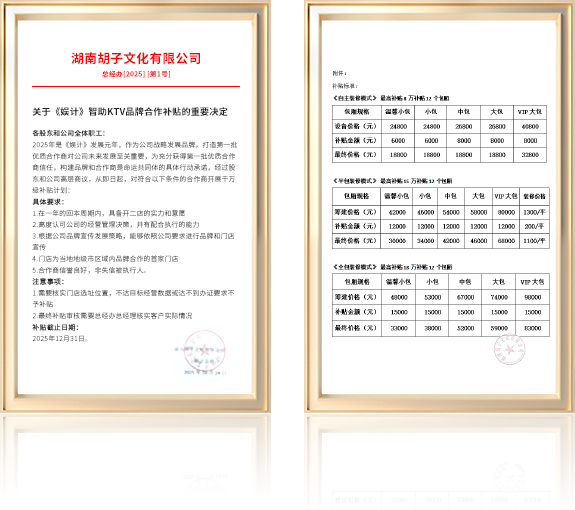 《娱计》品牌隶属于湖南胡子文化有限公司是一家以智助KTV为主营业务并融合台球、棋牌的综合型娱乐文化公司,公司以和意向投资者合作,搭建门店体系、落地成熟门店、代运营管理门店获取利润的方式,构建和加盟商的命运共同体,实现门店和公司的共同发展。